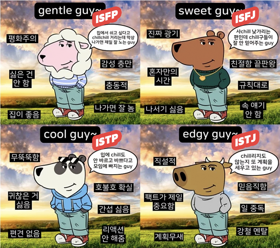 푸망 칠가이 테스트는 기존의 MBTI로도 해석해 볼 수 있습니다.