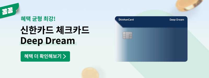 1위 신한카드 Deep Dream 체크카드 / 혜택 균형 최강!!