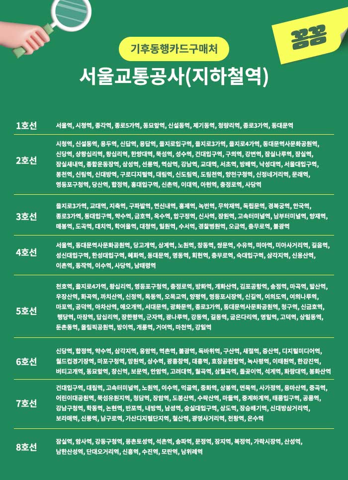 기후동행 실물카드는 서울 지하철역에서 구매가능합니다.