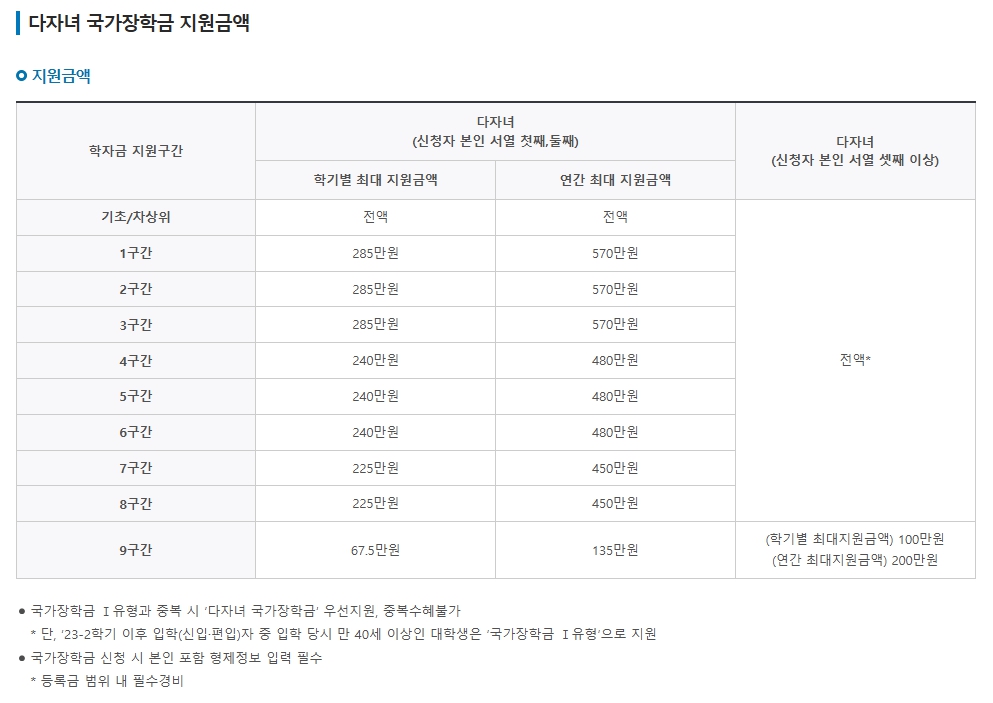 국가장학금Ⅰ유형(학생직접지원형) & 다자녀 유형별로 정리된 걸 확인해 보시기 바랍니다.
